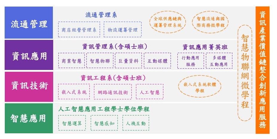 資訊與流通學院的組成規模、人力資源、經費預算、空間設備等均發展健全,在本校發展主軸「落實創新服務、培育立型人才」的策略目標下,配合國家施政方向、人力市場發展趨勢,及區域環境的特色需求,拓展教學、服務、產學、研究及國際交流等既定規畫方向。